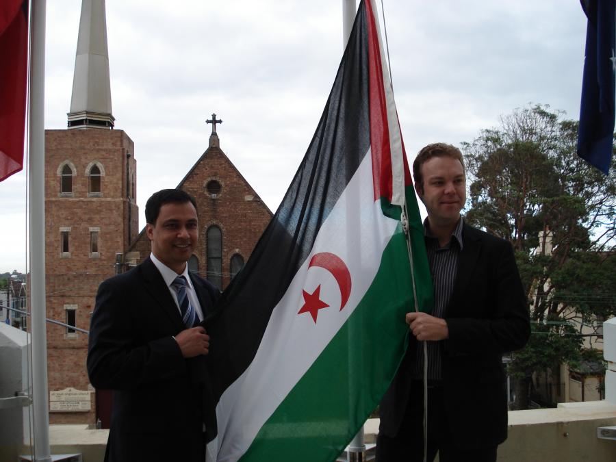 We interviewed Kamal Fadel the Saharawi appointed representative to Australia and New Zealand who is pictured with Jamie Parker, Member of NSW Parliament, raising the flag on the occasion of Saharawi National Day in February 2016…………………………
