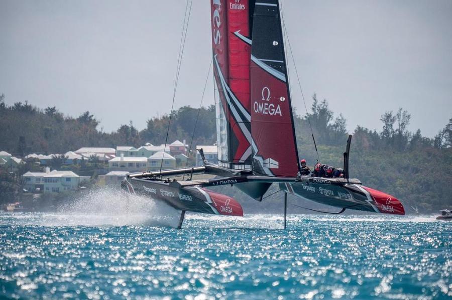 Two weeks later just hours after Emirates Team New Zealand’s capsize on the Great Sound during qualifying meant another phone call to the C-Tech team. Within hours the emergency order order of fairings and struts were being built. They were completed and shipped to Bermuda in record time.