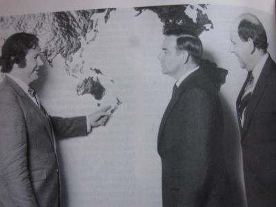Burroughs, then a major force in world computing, ranking only just behind IBM, recognised the value of this discovery and in a remarkably short space time branded it as LINC (for logic and information network compiler) and put it in the very top shelf of their worldwide marketing. Our photograph shows Gil Simpson (at left) with his co-developer Peter Hoskin. In the middle is Robert Holmes the Burroughs top sider who oversaw the deal.