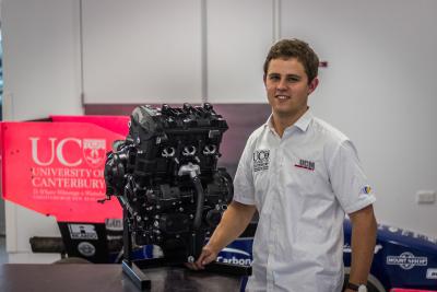 UC Motorsport team principal Jacob Ewing with one of the Triumph Daytona 675R engines that the students will be using to build their Formula Student race car. UC Motorsport team principal Jacob Ewing with one of the Triumph Daytona 675R engines that the students will be using to build their Formula Student race car. University of Canterbury