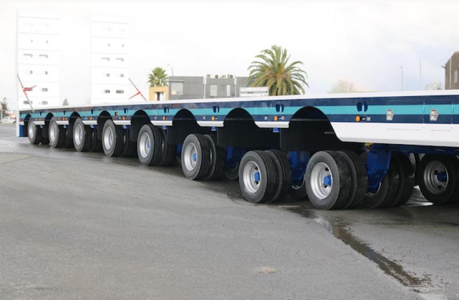 It has 64 wheels, eight spares and 16 BPW steer axles to provide the 23m trailer manoeuvrability in any direction.