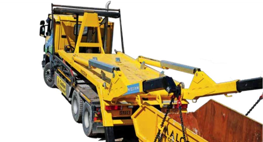“We can run a single vehicle as a standard hookloader for one journey, then quickly change it to a skiploader for the next job,” explains Freddy McAlister, fleet engineer at Malcolm Construction, the operator of this interesting new innovation.