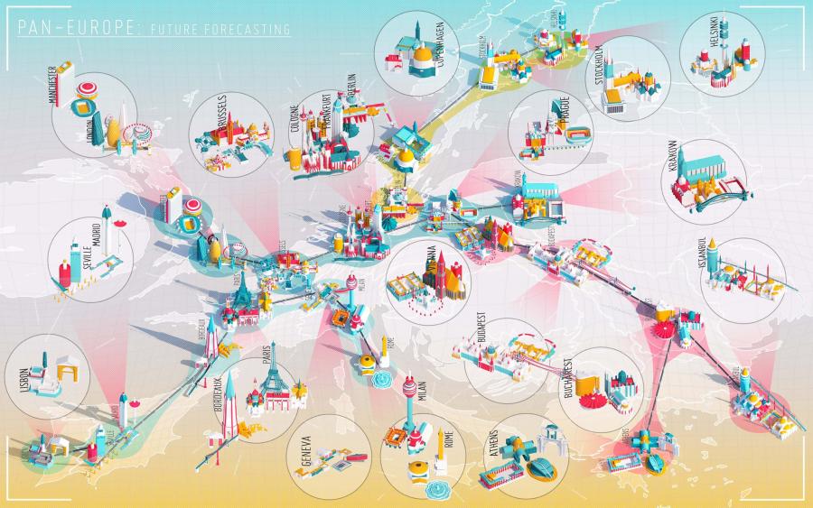 Connecting London to Krakow in just one hour and ten minutes, and passing through Brussels, Cologne, Frankfurt and Prague, Reid's Pan-European Corridor network leverages newly developed Hyperloop technology to make Europe's cultural corridor easily commutable while also helping to connect deprived communities that have been "left behind" by globalisation.