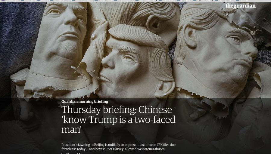Experts say Trump’s words are unlikely to ingratiate him with the Chinese leadership. “He’s a two-faced man … Beijing might be happy but they know very well in their hearts [what Trump is like],” said Shi Yinhong, a Renmin University international relations expert. Trump, though, says we’ve got him all wrong.