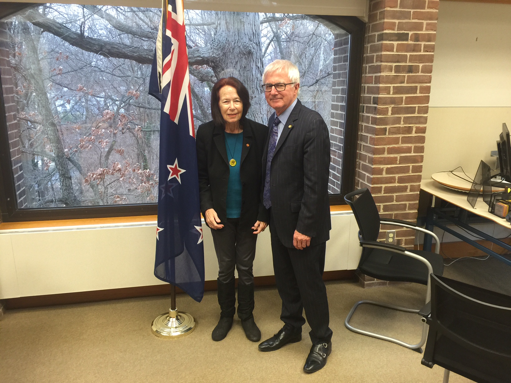 MSCNewsWire, 13 March 2014 - After a lifetime massaging trade deals as an official and then as a Minister of the Crown, Tim Groser finds himself negotiating his trickiest mercantilist tightrope to date. As his country’s freshly installed ambassador to Washington the urbane yet wily bureaucrat must bed down his country’s role in the TPPA which he last year described as “New Zealand’s biggest ever free trade deal.”His problem? How to get value from the Trans Pacific arrangement for an agrarian nation at a time when parties to the arrangement, along with the rest of the developed world, enter the era of hyper farm surplus?Nothing unusual in this, even though the surplus is of greater magnitude than anything that has gone before.In the past, trans Pacific parties such as the United States, Australia, and New Zealand have shared a simple solution. This was to ship the surplus to the always hungry Soviet Union, or Russia as we would describe it now.This is no longer possible due to the US invoked and vigorously policed embargo on sending anything to this old disposal market.Neither does the vast North American market offer much hope. Nobody is more conscious than Mr Groser of the surgical delicacy required in persuading Canada to sign up to the TPPA in the face of the opposition from its French-speaking dairy farmers, the most protected anywhere on the globe.Should Mr Groser turn his attention to Europe he can only contemplate still greater surpluses as more farm categories come off the restricted production quota list. Next off the rank, the EU sugar beet production limits.And yet...and yet....markets are never static. Mr Groser would never utter it, and may even have disciplined himself never to think it. But daily the odds are increasing in favour of Britain’s exit from the EU.From his Washington command-post, it is hard to imagine that Mr Groser does not see just one more trade deal, on top of all the other ones to which he has been a party?As he suavely goes about his official rounds, might not Mr Groser be forgiven if his thoughts are pulled away from a Pacific contemplation to considering now the nearby Atlantic Ocean?As someone as close to the epicentre of world trade as it is possible for anyone to reach, might he not just be contemplating from time to time, oooh, something like a new Commonwealth Preference regime?One in which Euro-soured Britons return to the supplier that rescued them until quite recent times from what Mr Groser and his diplomatic colleagues would delicately describe as “food insecurity.”When the dean of the White House Press Corps and holder of the National Press Club, Lifetime Achievement Award Connie Lawn (pictured with Mr Groser) was first through the embassy doors to discuss events with the the new ambassador, these and other elements of realpolitik became the background tapestry to the official politesse.The lesson of very recent years, and to which the Russian embargo bears witness, is that not only is the United States run from Washington. But in large measure, so is Europe.