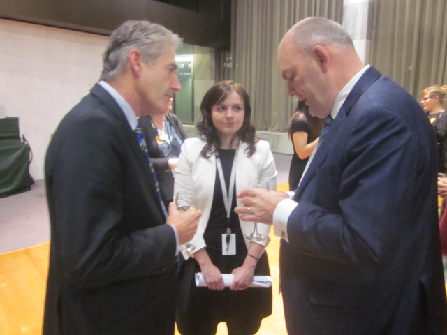 Pictured above at the Global Enterprise Experience awards ceremony at Parliament’s banqueting hall are Victoria University vice chancellor Grant Guilford with Steven Joyce MP with finalist and (below) organising official adjunct professor Dai Gilbertson with guests.
