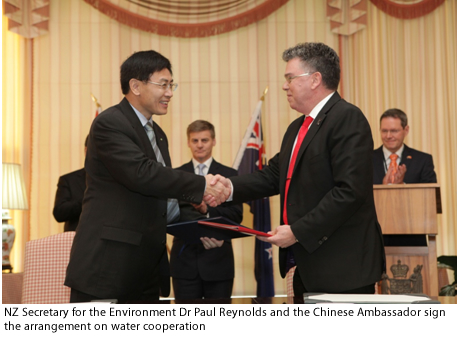 During a visit to Wellington of Vice Premier Hui Liangyu in September 2011, Dr Paul Reynolds (pictured at the signing) then Secretary for the Environment signed a Cooperation Arrangement between the Ministry for the Environment and the Ministry of Water Resources, China.