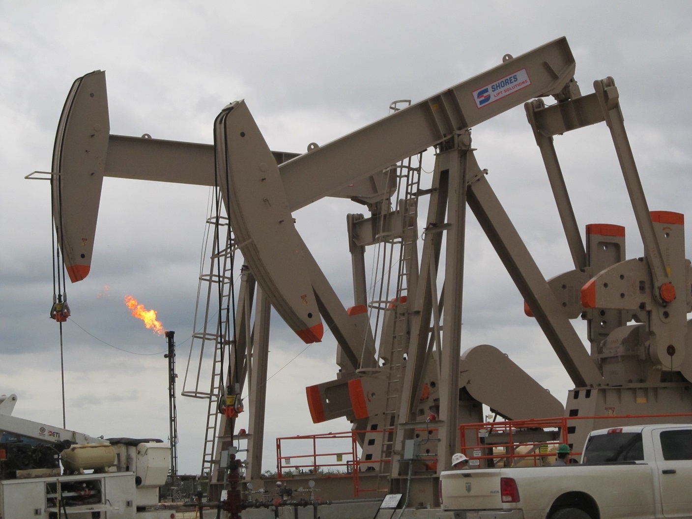 Every half mile or so across the scrubby mesquite country to the horizon are pairs of pump jacks endlessly doing their slow up and down dance. Offroad, through locked gates we arrive to recent earthworks hosting a pair of the new pumps. A smell of sulphur is in the air.